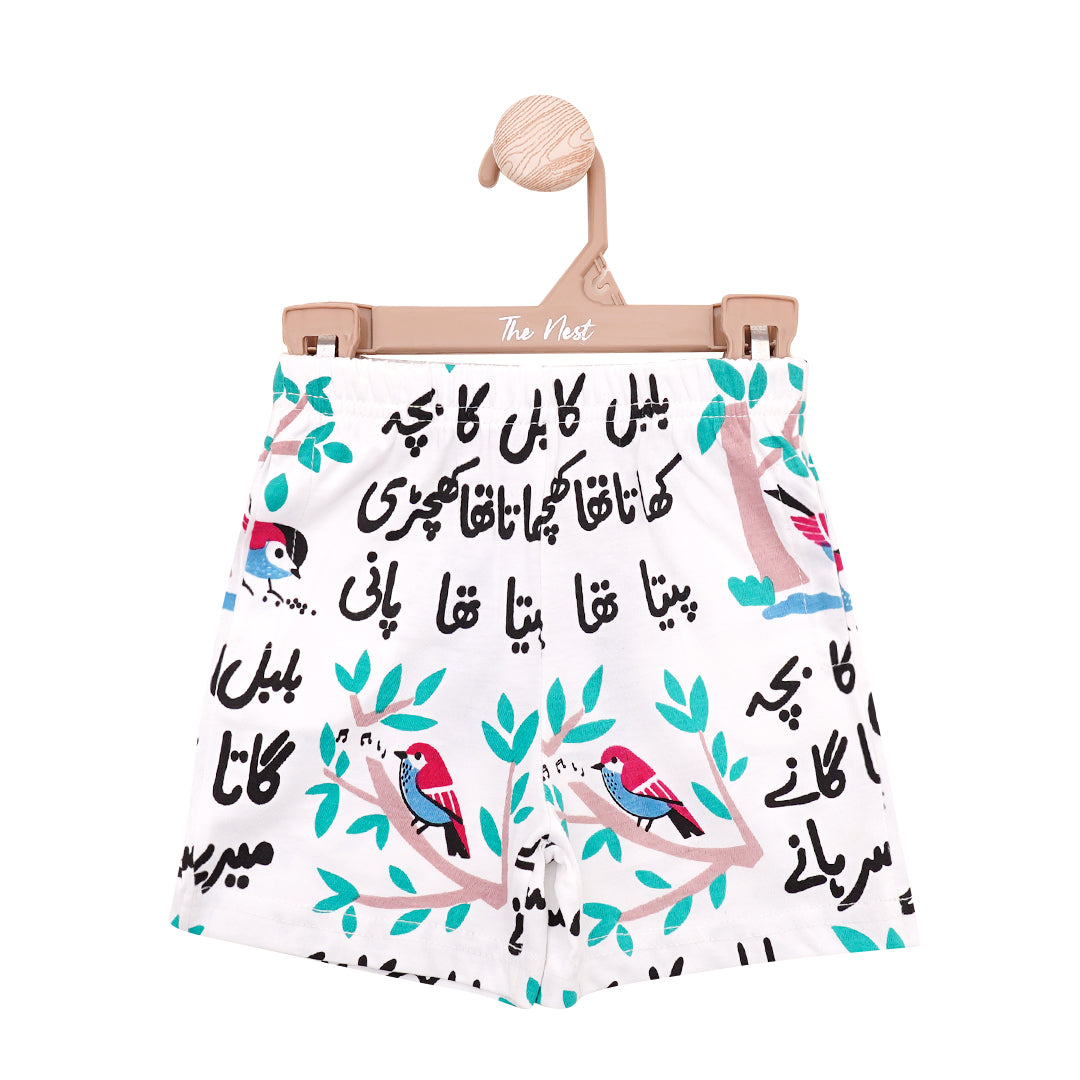 Provide your baby the gift of both comfort and cuteness with our bulbull trousers. Cut from soft cotton jersey fabric, these shorts are both comfy and sturdy, and absorb the moisture from the body to keep your baby protected against rash and soreness. The beautiful poem imprinted all over is a delightful highlight of these shorts, that make them all the more unique and adorable.