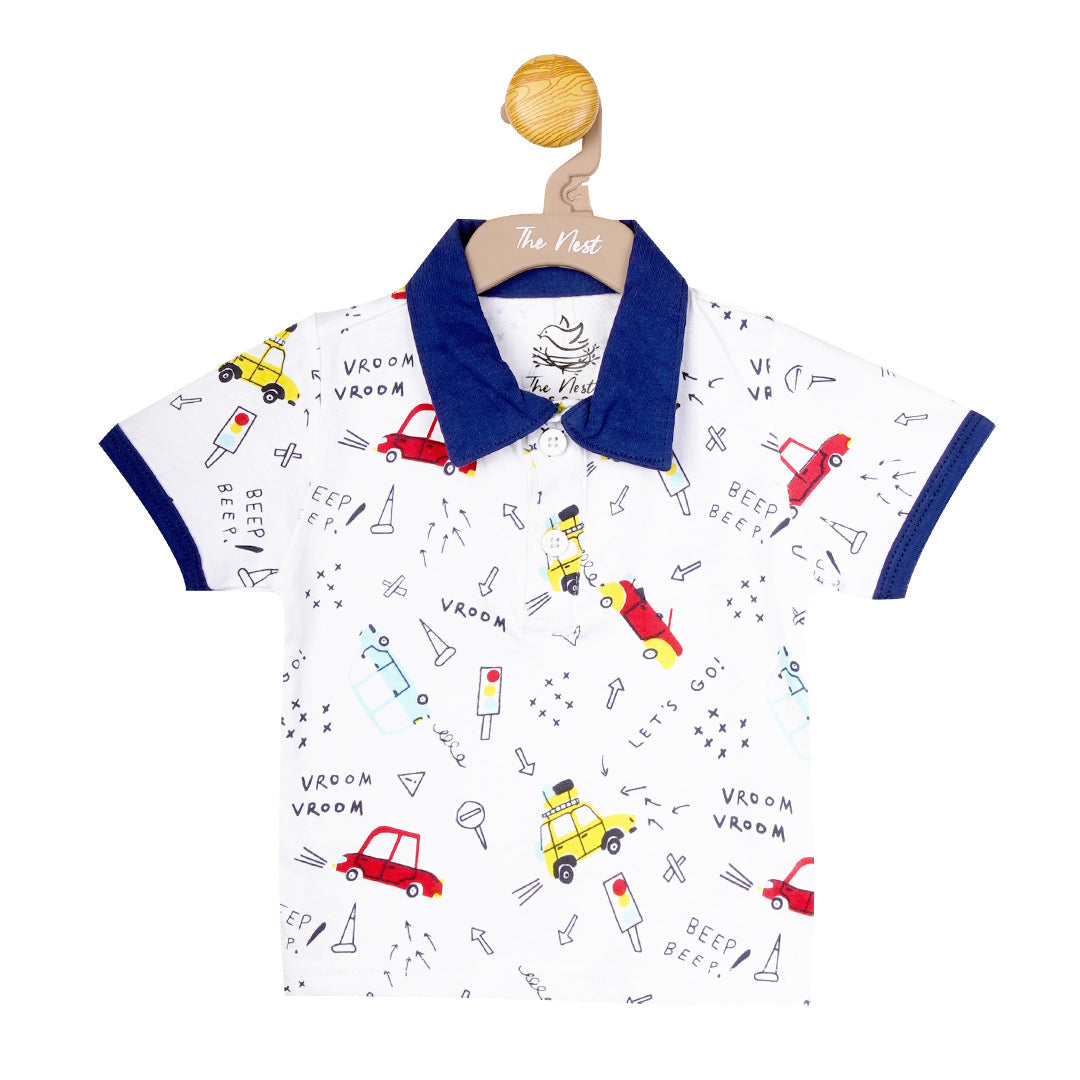This baby polo bodysuit is sure to be a star of your baby’s wardrobe this season. The soft interlock fabric will keep them comfortable all day long, while the stylish printed scenario of traffic signals and speedy cars and taxis will catch all the attractive eyes. It is perfect for any occasion